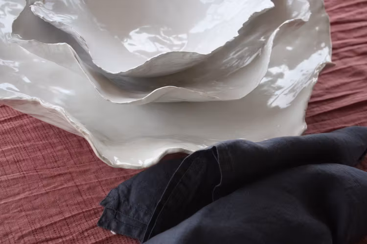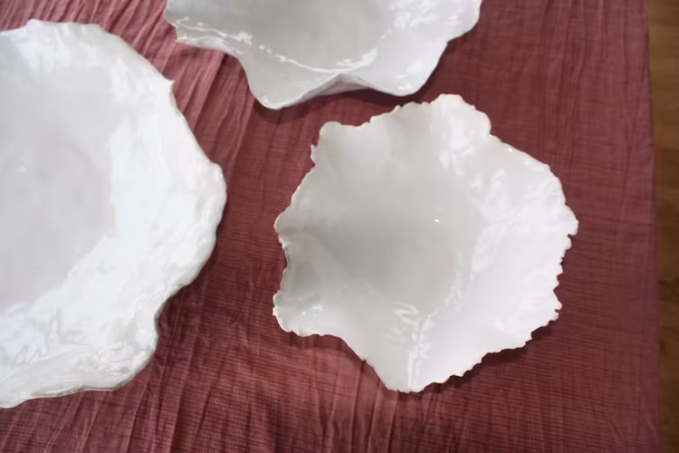 Fantastisk vackert vitglaserat keramikfat med oregelbunden kant.