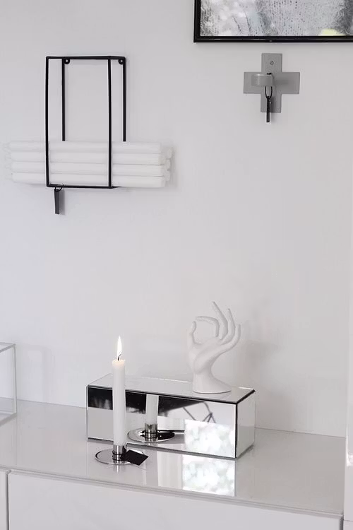 Komplettera din inredning med denna eleganta ljushållare och ljusförvaring från Annelie Palmqvist. Den är handgjord och färgad i svart, vilket ger en modern och stilren look till ditt hem. Ljushållaren har en storlek på 25 X 14 X 7,5 cm och kan såväl hängas upp på väggen som stå på ett bord eller ligga på golvet. Den är tillverkad av hög kvalitet och kommer att hålla länge. Du kan använda den som förvaring för dina stearinljus, men den blir även en vacker detalj på väggen. Fyll den med dina favoritljus och skapa en varm och mysig atmosfär i ditt hem. Ljushållaren är perfekt för dig som vill ha en snygg och praktisk lösning för att förvara ljus.
