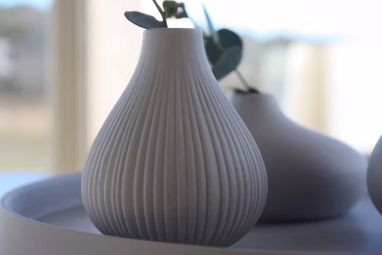 Söt liten vas med räfflad utsida med matt finish. Placera den gärna i grupp med flera vaser i olika storlekar, färger och utföranden.